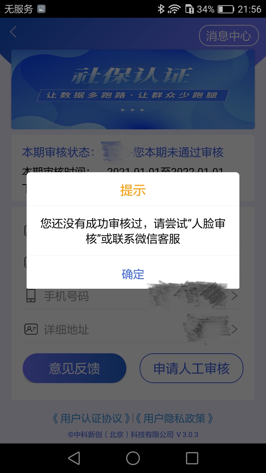 答:请确保是本人进行人脸识别认证,点击“重试”,失败三次会提示“申请人工审核”,点击申请人工审核后,工作人员会在3个工作日内在app内回复,请关注app用户管理的“消息中心”。