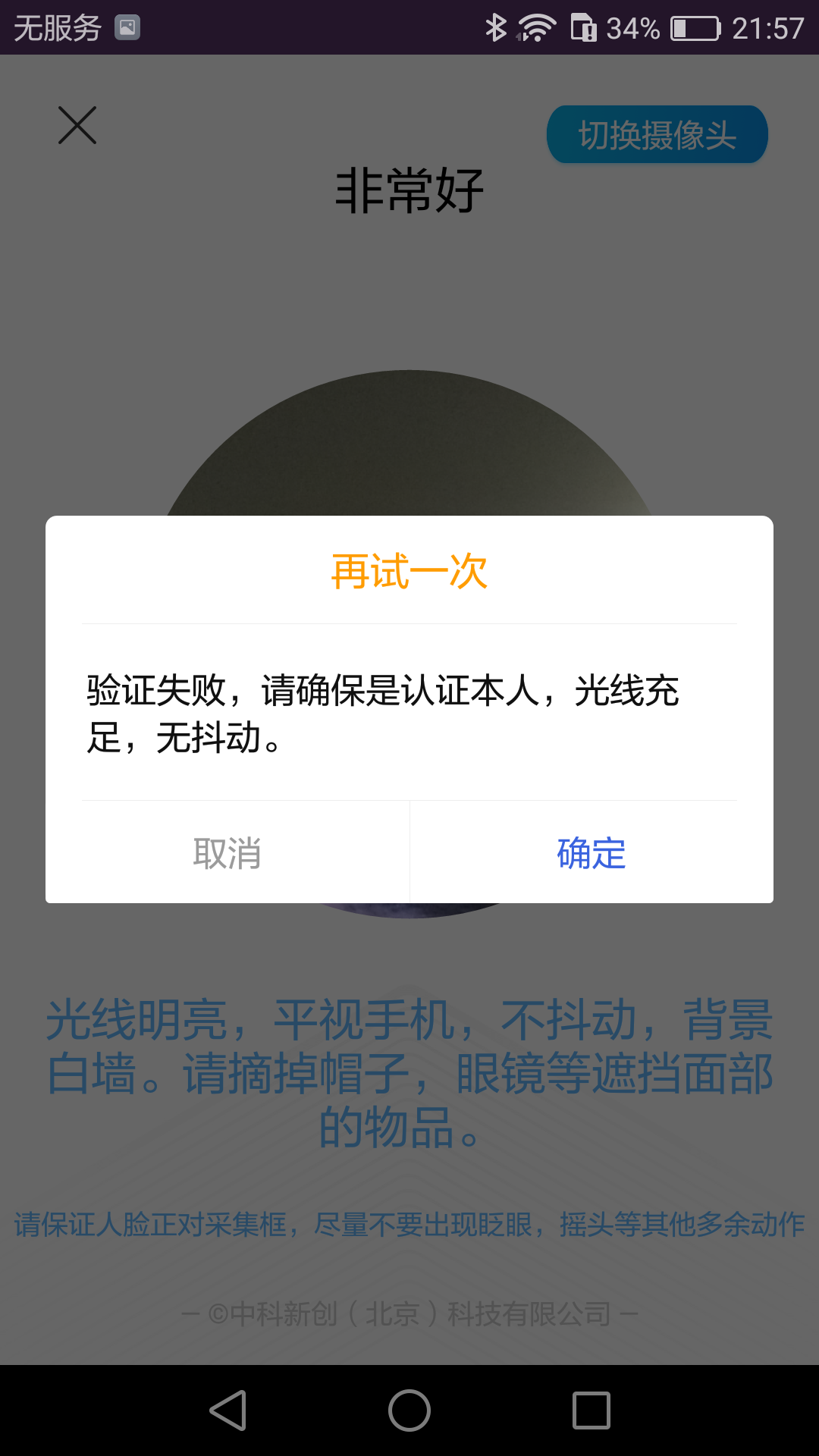 6、第一次做人脸识别时出现“活体检测失败,请确保……,无抖动。是否重试?